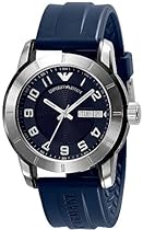 Discount price for Armani Sport Collection Navy Blue Dial Men's Watch #AR5873 Sport watch, Japanese quartz movement, Brushed silver-tone hands and numbers with luminous accents, Small white numbers and indices, Analog day and