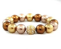 Formal Bronze gold colored pearls with 12mm gold ball covered in rhinestones make this a fancy bracelet for a special occasion.Clasp: StretchSize or Pearl: 12mm PearlsFor Bridesmaids or Formal Events: Bronze, Gold and Taupe pearls look best with a wide range of brown colored bridesmaid gown Clasp: Stretch Size or Pearl: 12mm Pearls ...