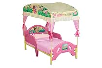Find Dora the Explorer Toddler Bed with Canopy The Dora toddler bed with sheer canopy is not only adorable its functional This adorable Dora the Explorer Toddler Bed with Canopy will have the little explorer in your life excited about getting her beauty rest The bed uses a standard crib mattress (not included) and requires some assembly Made of sturdy metal and plastic Features safe side rails as well as foot and head board. Contains decals