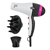 Discount Zoe 4708 Polkadot Professional Hair Dryer with Concentrator and Diffuser, White and Black with Dots tourmaline also exudes far infrared heat to deliver sleeker, shinier results with less damage, making your hair silky and smooth includes wide concentrator and diffuser. Zoe signature polkadot series professional hair dryer features tourmaline ceramic technology to reduce static electricity, seal in the cuticle, and lock natural moisture in the hair Tourmaline ceramic technology to reduce static electricity seal in the cuticle and lock natural